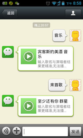 还可以输入:播放音乐|来首歌|来首音乐|放歌|音乐|mp3|点首歌|点歌|我要听歌